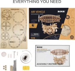 Immergiti nel mondo affascinante dello steampunk con questo kit di montaggio di un dirigibile in legno. Questo set offre un'esperienza unica grazie ai dettagli elaborati e agli elementi meccanici come le eliche e le ruote mobili.
