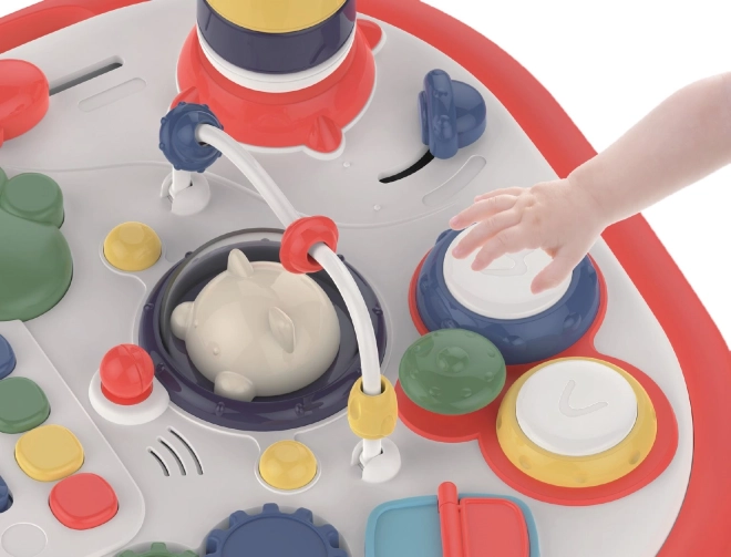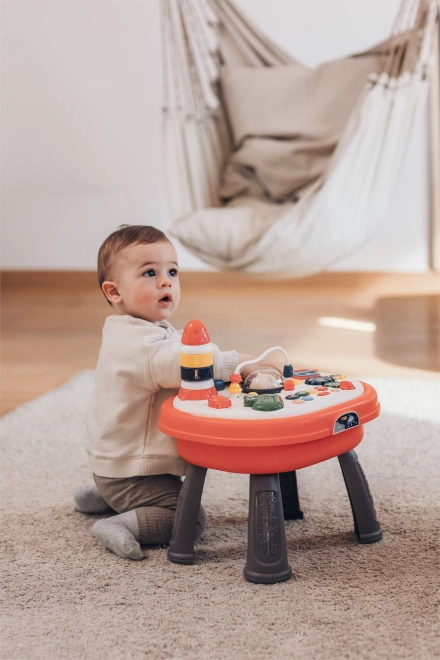 Divertente tavolino interattivo per i più piccoli che sviluppa percezione sensoriale, motricità fine e creatività. Offre effetti luminosi e sonori, regolazione del volume a due livelli, pannello girevole con lato compatibile con mattoncini tipo Lego e tanti pulsanti, ingranaggi e elementi di gioco. Il pannello è removibile e il tavolino può essere utilizzato anche come contenitore per giocattoli.