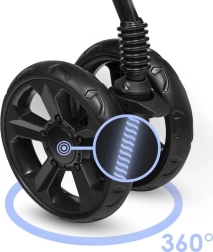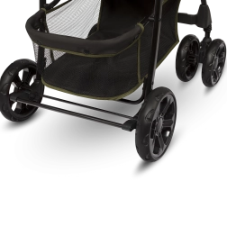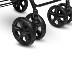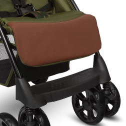 Grazie alle ruote in schiuma EVA resistente il passeggino è affidabile su diverse superfici. Le sospensioni morbide sulle ruote anteriori assorbono gli urti e la possibilità di blocco per andare dritto aumenta la stabilità sui pavé. Il passeggino si chiude facilmente in dimensioni compatte per il trasporto o il riponimento nel bagagliaio.
