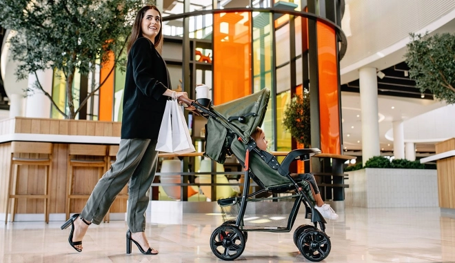 • Praticità per i genitori: ampio cestello per la spesa, organizer con portabicchiere sul maniglione, chiusura rapida, borsa inclusa con scomparti.