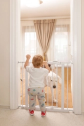 Questa barriera di sicurezza per bambini è la soluzione ideale per proteggere il tuo bambino a casa. È adatta per l'installazione in aperture delle porte, corridoi e scale. L'installazione non richiede forature, il che significa che non danneggerai pareti o telai. Grazie all'altezza ridotta del gradino e al doppio blocco, il passaggio per gli adulti è facile, ma sicuro per i bambini piccoli.