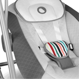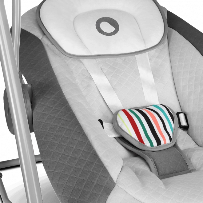 La sicurezza è garantita dal robusto telaio in acciaio e dalle cinture a 5 punti; il comfort è assicurato dall’imbottitura morbida e rimovibile con parti lavabili a mano e da un cuscinetto per il corretto supporto della testa. Il pratico timer, le cinque intensità di dondolio e l’alimentazione tramite USB o batterie offrono la massima flessibilità in ogni casa.