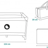 Grazie al meccanismo di piegatura intuitivo, il lettino si prepara all’uso o si ripone facilmente nella sacca da trasporto compatta. La pratica apertura laterale con zip favorisce l’autonomia dei piccoli e le ruote con freni facilitano gli spostamenti in casa.