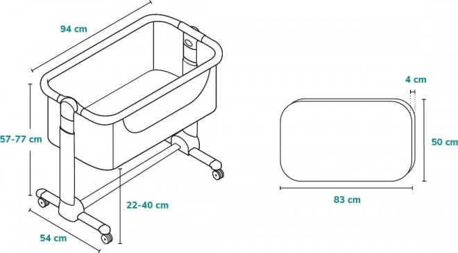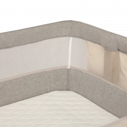L’altezza regolabile in 5 passi permette un allineamento preciso al letto e la possibilità di inclinare il materasso aumenta il comfort in caso di raffreddore o reflusso. La rete traspirante migliora la ventilazione e la visibilità del bambino. La struttura stabile è stata testata da TÜV SÜD e SGS secondo le norme EN 1130 e EN 16890.