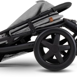 Le grandi ruote in schiuma EVA affrontano marciapiedi cittadini e superfici irregolari. Le ruote anteriori bloccabili e le sospensioni morbide facilitano le manovre. La sicurezza è incrementata dalle cinture a 5 punti con imbottiture, dal paraurti rimovibile e dagli inserti riflettenti. Il passeggino è conforme alla norma EN 1888 ed è stato testato da un laboratorio indipendente Intertek.
