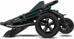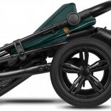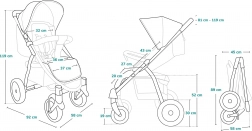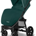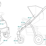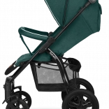 La dotazione pratica include maniglione regolabile, barra di sicurezza staccabile in ecopelle, ampio cestello portaoggetti con portata di 9 kg e tasca sulla capottina. La sicurezza è garantita da cinture a 5 punti, freno a pedale e inserti riflettenti. In dotazione: coprigambe termico, portabicchiere e riduttore per neonato per un utilizzo confortevole fin dalla nascita.