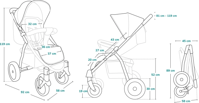 - Praticità per i genitori: chiusura facile, maniglione regolabile, cestello 9 kg, portabicchiere, tasca sulla capottina