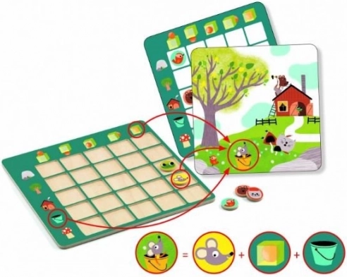 DJECO Topologix è un intelligente gioco educativo che aiuta i bambini a comprendere le relazioni nello spazio. Il compito è collegare correttamente l'animale con l'oggetto sulla carta e determinare se si trova sopra, sotto, su, dentro o accanto. I bambini imparano giocando, allenano la concentrazione e rinforzano la motricità fine manipolando i gettoni.