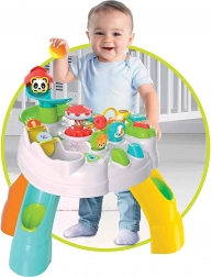 Su questo tavolino trovi ingranaggi che fanno girare la giostrina, pulsanti che animano i personaggi e un divertente percorso a biglie con scivoli che termina nelle gambe del tavolo. Questo tavolo non è solo divertimento, ma anche uno strumento per lo sviluppo di importanti abilità nei bambini.
