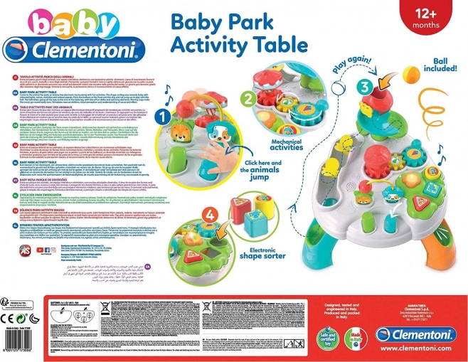 Per il funzionamento del prodotto sono necessarie 3 batterie a bottone da 1,5V AG13, R44 (incluse nella confezione a scopo dimostrativo). Il marchio BABY CLEMENTONI è noto per creatività, passione e attenzione alla qualità. I loro giocattoli favoriscono la comunicazione tra genitori e bambini e aiutano a sviluppare competenze fondamentali.