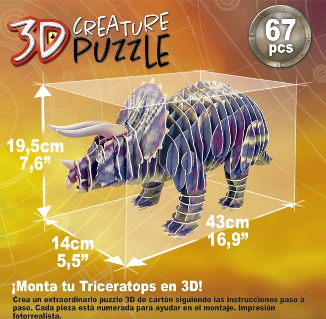 Costruisci il tuo mondo preistorico con il modello 3D di triceratopo in robusto cartone. Senza forbici né colla, con stampa fotorealistica e 67 pezzi tagliati con precisione, il montaggio è divertente e pulito. Sostiene destrezza, immaginazione e concentrazione ed è adatto a essere montato più volte.