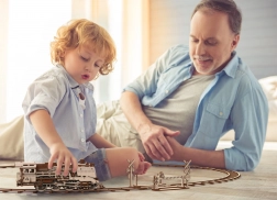 WOODEN CITY puzzle 3D binari circolari con passaggio a livello offre un’esperienza unica di modellismo e gioco. Grazie alla meccanica ben congegnata e al legno di qualità nasce una ferrovia funzionante in scala 1:40, sulla quale puoi cambiare il senso di marcia tramite il passaggio a livello. Il montaggio è divertente e istruttivo: scoprirai come cooperano ingranaggi, ruote dentate e motore a elastico.