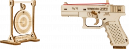 Il kit è realizzato in compensato di betulla ecologico e colpisce per gli elementi realistici come la sicura, il caricatore e la possibilità di sparare fino a cinque elastici consecutivamente. Ideale per appassionati di puzzle 3D, di tecnica o come regalo originale.