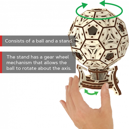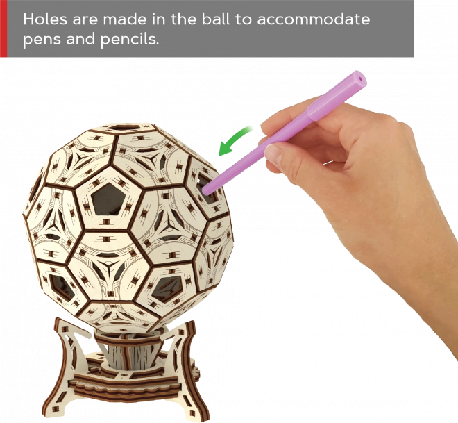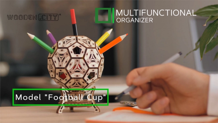 Perché essere un calciatore è così cool? Prima di tutto sei sempre in ottima forma, lo sport è la tua vita, sei famoso, hai gambe muscolose e tante ammiratrici. Suona bene? Questo organizzatore 3D multifunzionale è fatto proprio per te: uno straordinario trofeo di calcio. - può essere utilizzato per oggetti da ufficio - fai girare il supporto e guarda la palla ruotare - rimuovi la palla dal supporto e gioca liberamente Il puzzle 3D WOODEN CITY Football Cup è un regalo perfetto per tutti gli appassionati e tifosi di calcio.