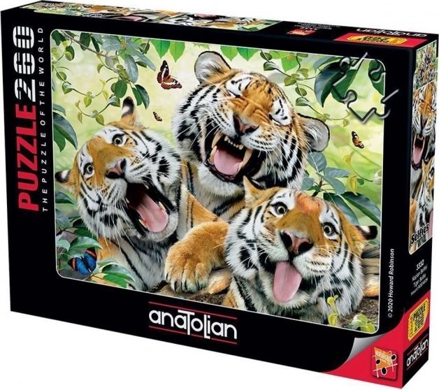 Questo incredibile puzzle del marchio Anatolian offre un modo efficace per rilassarsi e godersi il tempo libero. L'immagine della tigre, catturata in una posizione selfie comica, attira sia i bambini che gli adulti. È un ottimo modo per potenziare la concentrazione e la pazienza.