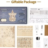 Una volta assemblato, la giostra decorerà il tuo scaffale e ti stupirà con la sua lavorazione dettagliata. Per rendere più piacevoli i momenti del montaggio, serve la melodia romantica, che puoi ascoltare grazie a un carillon di qualità a 18 toni realizzato con componenti giapponesi.