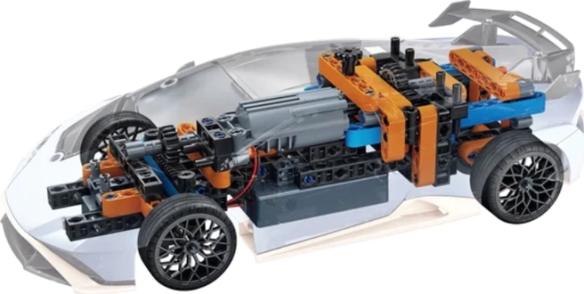 Assembla un modello dettagliato della Lamborghini Huracán STO con oltre 250 componenti. Il modello offre sterzo a cremagliera e due modalità di gioco: manuale per un controllo preciso e motorizzata, attivabile con un pratico interruttore manuale. Il manuale stampato e l'app con istruzioni 3D ti guideranno passo dopo passo, rendendo il montaggio chiaro e divertente.