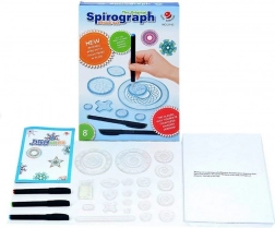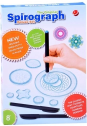 - Ingranaggi e righelli dello spirografo, 3 pennarelli, fogli A4, guida illustrata