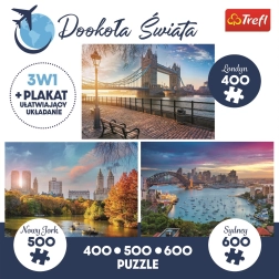 Ammira le città del mondo con questo puzzle unico di TREFL. Il set comprende tre diversi motivi con un totale di 1500 pezzi, suddivisi in 400 pezzi per Londra, 500 pezzi per New York e 600 pezzi per Sydney.