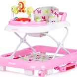 Grazie a tre livelli di altezza, il girello si adatta facilmente alla statura attuale del bambino. Le ruote anteriori ruotano a 360°, permettendo di muoversi con fluidità in tutte le direzioni. Pratici anche la chiusura rapida e la possibilità di sganciare il pannello per usarlo come gioco a sé stante.