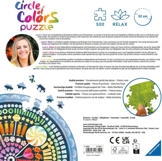 Durante la composizione scoprirai un design dettagliato e materiali di alta qualità che rendono questo puzzle non solo un divertimento, ma anche un'opera d'arte. Ideale per un rilassante momento solitario o per un divertente momento di condivisione con i propri cari. Aggiungi un tocco di colore e creatività alla tua collezione con il puzzle Ravensburger Cerchio di colori Dolciumi.