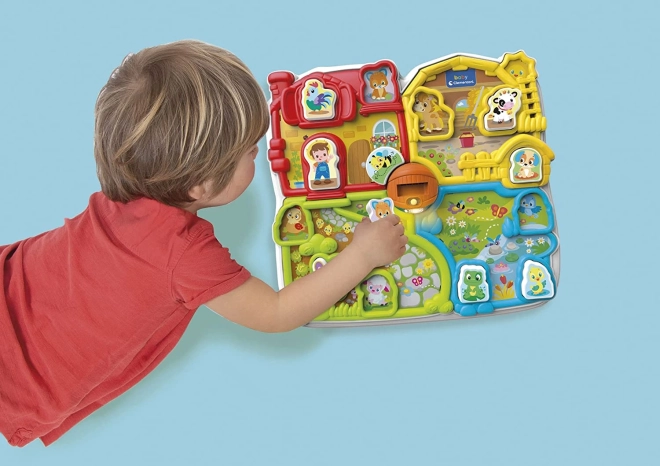 La fattoria interattiva offre quattro aree a colori differenziati – casa, stalla, giardino e stagno. Include anche un inserto di 12 pezzi che i bambini possono utilizzare come figurine nei giochi successivi. L'ape rotante intorno al ponte aggiunge un ulteriore elemento divertente.