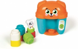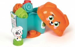 La pratica scatola mantiene tutti i pezzi insieme e il coperchio funge da base stabile per costruire. Il motivo allegro del cagnolino incoraggia i bambini a esplorare e a giocare.