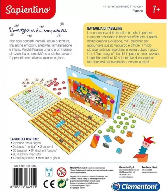 In questo gioco per due giocatori, ogni giocatore cerca di posizionare strategicamente le proprie lattine sul campo di battaglia e indovinare la posizione dell'avversario pronunciando esempi delle tabelline. Il gioco è progettato per stimolare il pensiero logico e matematico e allo stesso tempo allenare la memoria.
