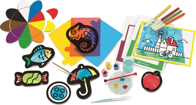 Il set include gelatine colorate e tempere per esperimenti divertenti nell'apprendimento dei colori.