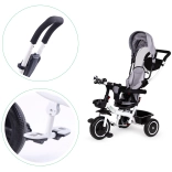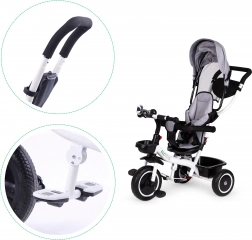 È dotato di una maniglia di guida posteriore per il controllo da parte del genitore, che può essere rimossa per permettere al bambino di guidare da solo. Riposapiedi pieghevoli ideali per i piccoli che ancora non arrivano ai pedali, e barriere di sicurezza removibili garantiscono la massima sicurezza.
