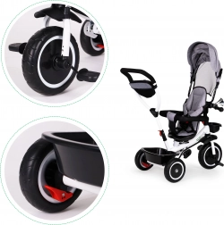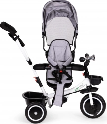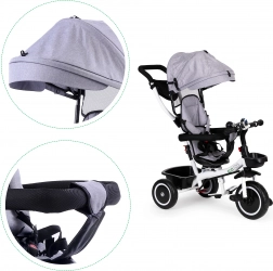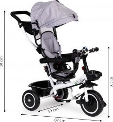 Il triciclo ECOTOYS è un perfetto compagno per il vostro bambino dai 6 mesi. Il telaio in acciaio sicuro con cintura di sicurezza a 5 punti garantisce stabilità, mentre il tettuccio removibile protegge da sole e pioggia. Il sedile rotante può essere regolato verso il genitore o in avanti, consentendo flessibilità e sicurezza durante le passeggiate.