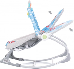 Pratica e confortevole sdraietta vibrante 2 in 1 per neonati fin dalla nascita, che funge sia da dondolo che da seggiolina. Offre vibrazioni delicate, melodie piacevoli, schienale regolabile e archetto con giochi sospesi per lo sviluppo della motricità e il divertimento. La sicurezza è garantita da cinghie a 3 punti e da una struttura stabile.