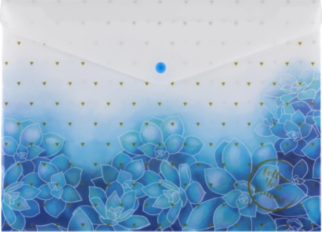 Pratica busta portadocumenti formato A4 con stampa accattivante e affidabile chiusura a bottone. Offre il trasporto e l’archiviazione sicuri dei documenti, è realizzata in materiale robusto con spessore di 200 micron ed è fornita in mix di motivi. Ideale per scuola, ufficio e viaggio.