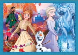 Puzzle 4v1 Frozen offre immagini pittoresche di altissima qualità e diverse dimensioni, ideali per tutti gli appassionati di enigmi grazie al marchio Clementoni.