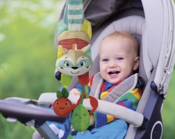 Grazie alla clip robusta, il giocattolo si appende facilmente ovunque – al passeggino, al seggiolino auto o sopra il lettino – e il bambino lo avrà sempre a portata di mano.