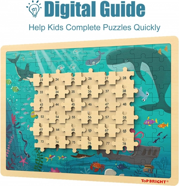 Affida ai bambini un'emozionante avventura con il puzzle in legno Mondo Marino di TOP BRIGHT. Questo puzzle innovativo, realizzato in legno, offre: