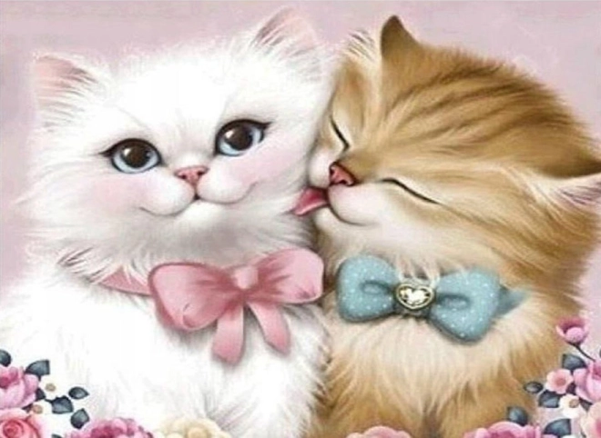 - Il risultato è un quadro scintillante con un romantico motivo di gatti innamorati.