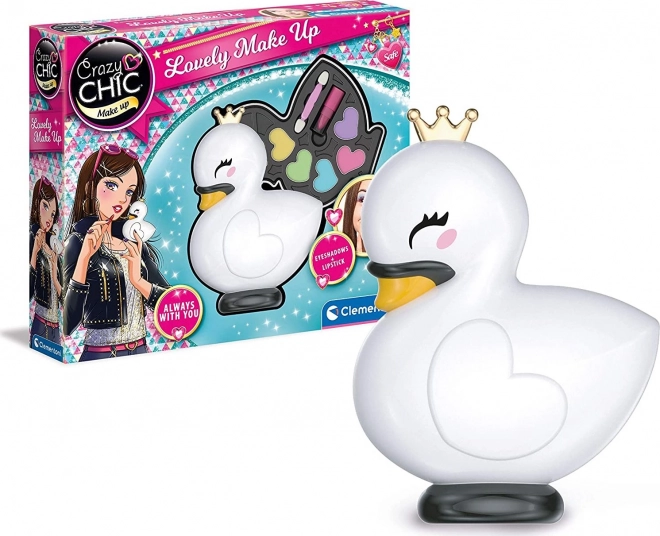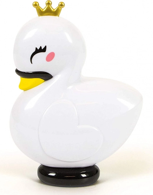 La custodia da collezione a forma di cigno con corona dorata conquista con il suo aspetto e incoraggia il gioco creativo e l’apprendimento del trucco seguendo le istruzioni.