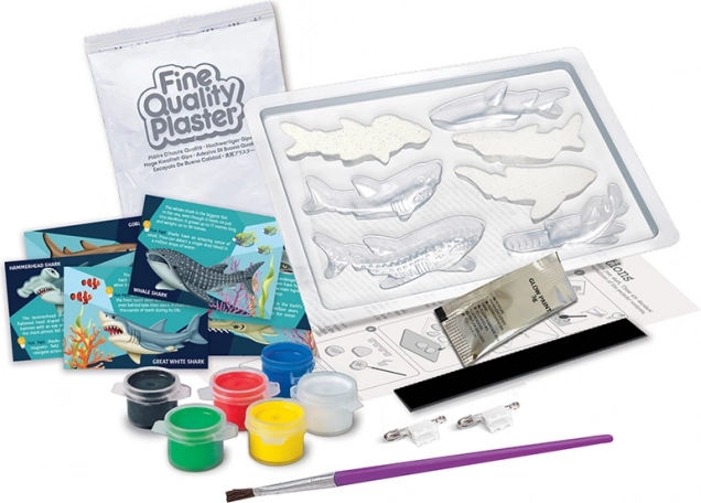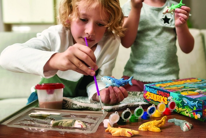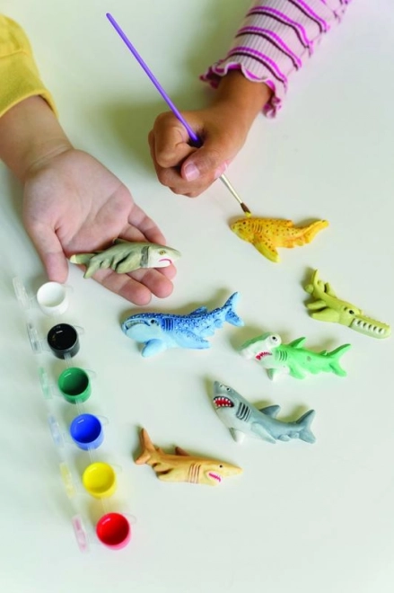 Il set permette ai bambini di utilizzare appieno la loro immaginazione nel dipingere e modellare gli squali, supportando il loro sviluppo creativo.
