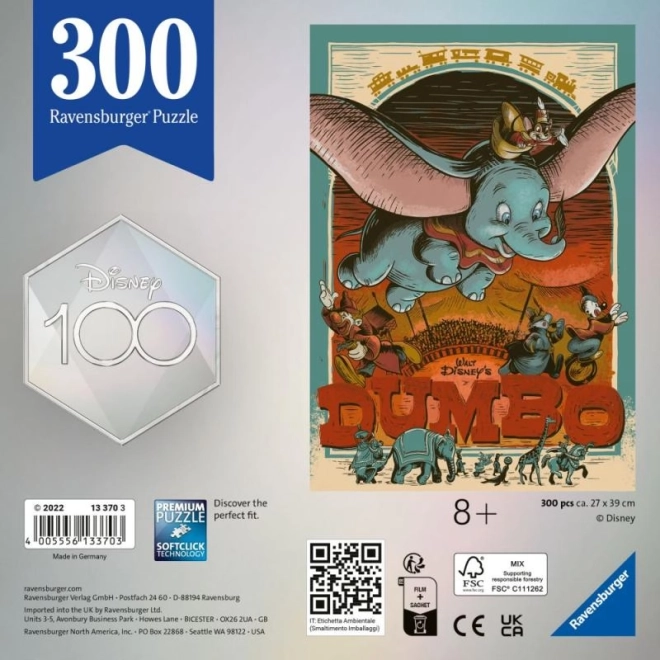 Festeggia l'anniversario DISNEY con l'incantevole tema di Dumbo e goditi un puzzle di qualità da 300 pezzi firmato Ravensburger. Pezzi unici, tagliati con precisione, che combaciano perfettamente, dai colori vivaci, ideali per un relax divertente e per allenare le abilità da puzzler.