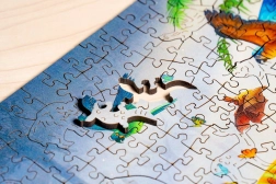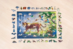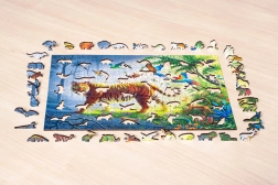 Il puzzle in legno Tigre nella giungla combina la precisione della produzione europea con un motivo affascinante. Ogni pezzo è unico: tra essi troverai forme di animali, fiori e altri oggetti che rendono l’assemblaggio ancora più divertente e visivamente attraente. Grazie alla robustezza del materiale e al taglio preciso, il puzzle mantiene perfettamente la forma e i riassemblaggi ripetuti non lo danneggiano.