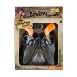 I bambini allenano immaginazione, role-play e motricità fine mentre si divertono con un’azione sicura. La cintura con fibbia mantiene le fondine al loro posto, così tutto è pronto per un’estrazione rapida come in un vero western.