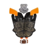 La vita da cowboy affascina i piccoli avventurieri: con questo set i loro racconti western diventano realtà a portata di mano. Due revolver dallo stile nero e arancione, fondine decorative e la stella da sceriffo creano il costume perfetto per carnevale, feste e il gioco quotidiano.