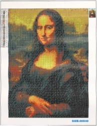 Replica l'opera d'arte famosa Mona Lisa sulla tua tela usando piccoli diamanti.