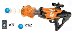 La confezione include 3 bersagli da allenamento e 12 morbide palline in foam, sicure e adatte a un uso ripetuto. Il caricamento e il controllo semplici garantiscono un gioco senza problemi per tutte le fasce d’età.