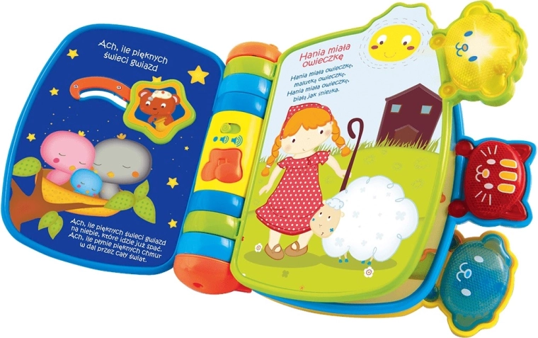 Scoprite le prime letture che catturano i bambini a prima vista. Questo libro interattivo offre immagini colorate, animaletti luminosi, elementi mobili e semplici canzoncine che favoriscono lo sviluppo della vista, dell’udito e della motricità fine. Basta premere il tasto con la nota musicale – è il momento di cantare e giocare insieme!
