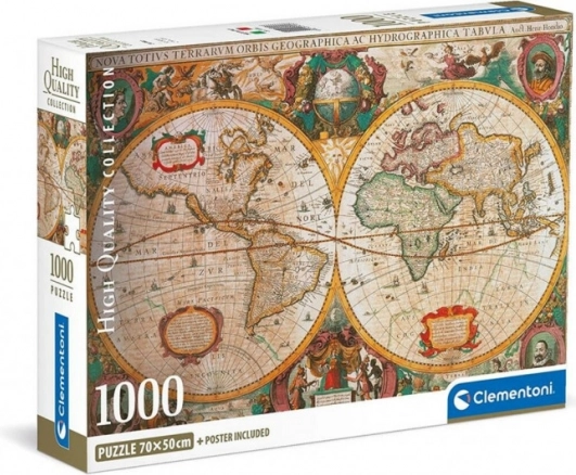 Scopri il motivo dettagliato della mappa antica, che entusiasmerà gli amanti della storia e dei viaggi. I puzzle in carta di CLEMENTONI si distinguono per pezzi tagliati con precisione, superficie piacevole e stampa fedele, grazie alla quale risaltano anche i dettagli più fini. L’immagine completata può essere smontata e ricomposta, oppure incollata sul retro e appesa come decorazione originale.