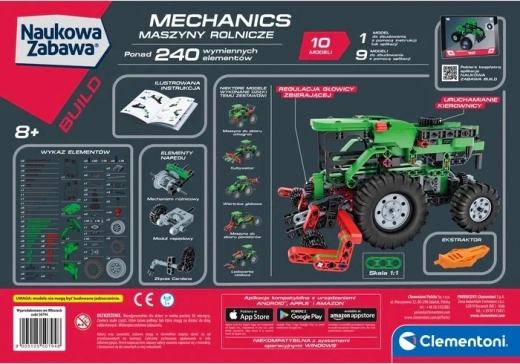 Questo kit educativo è ideale per piccoli tecnici e appassionati di meccanica agricola. Costruisci fino a 10 modelli funzionanti, come un trattore o una testata di raccolta, ed esplora il funzionamento di ingranaggi, giunti cardanici e del meccanismo di differenziale. Ogni modello si muove e mostra fenomeni meccanici reali in modo accessibile e divertente.