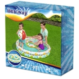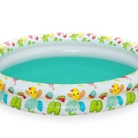 Il pratico set per bambini offre tutto il necessario per il divertimento in acqua in giardino o in vacanza. La piscina con diametro di 122 cm ospita comodamente due bambini, che si godranno tanto divertimento e rinfresco. Grazie al design tropicale con frutta e animaletti, ogni giorno all’aperto sarà una piccola festa.