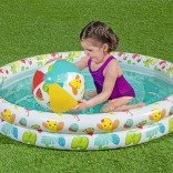 La sicurezza e la resistenza sono garantite dal vinile di qualità, testato, e da due camere d’aria separate a forma di anello. Il set è completato da un salvagente (ideale per bambini 3–6 anni) e da una leggera palla da spiaggia, che favoriscono sicurezza in acqua e motricità.